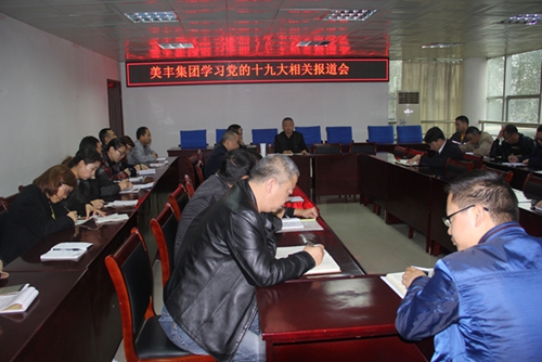 2017.10.26美丰集团集中学习党的十九大报告10月23日上午,集团公司在美青化工生产大楼二会议室召开会议,集中学习习近平总书记在党的十九大开幕会上作的工作报告。集团党委委员、所属各企业中层副职以上管理干部参加了会议。会议由集团党委书记、总经理任国建了解更多