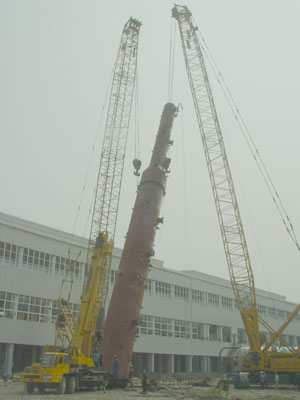 2007.08.212030项目第二批大型设备吊装成功2007年8月18日下午3点正,随着现场指挥员一声哨响,四川美青氰胺有限责任公司“年产20万吨合成氨联产30万吨尿素工程”继重达305吨的尿素合成塔设备吊装成功后,又一批大型设备开始吊装,高42米、直径了解更多