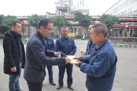 在新春佳节来临之际,射洪市直机关工委副书记刘杰来公司慰问生活困难党员,为他们送去新春祝福和市委、市政府的关心关怀。